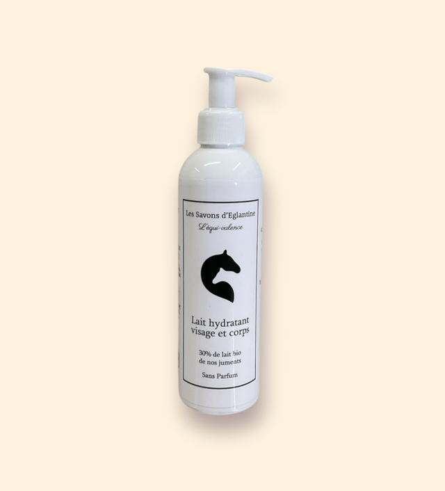 Lait hydratant visage et corps enrichi avec 50% de lait bio de nos juments, sans parfum sans huile essentielle, formulé pour bien hydrater et offrir à votre peau tous les bénéfices du lait bio de nos juments sans laisser de film gras. Adapté aux peaux fragiles et délicates.